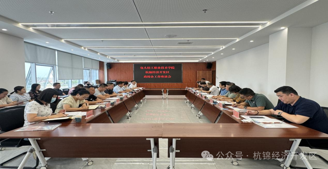 座谈会上,邵文祥书记首先介绍了包头轻工职业技术学院在职业教育和科研创新方面所取得的成就。他表示,学院一直以来高度重视与地方经济和产业的对接,积极调整专业设置和课程内容,以适应地方产业发展的新需求。同时,学院也致力于提升科研实力,通过与企业合作开展科研项目,推动产学研一体化发展。杭锦经济开发区人才和科技局、旗委组织部、旗工科局、旗人社局等部门负责人分别介绍了杭锦旗的产业发展现状、人才需求和政策支持等情况。并表示,随着开发区经济的不断发展,对高素质技能人才的需求日益迫切,希望与学院加强合作,共同培养符合产业发展需求的专业人才。部分重点企业负责人也分享了企业在人才培养、技能培训等方面的经验和需求。他们普遍认为,通过校企合作,可以为学生提供更多的实践机会和就业渠道,同时也可以为企业输送更多具备实际操作能力和创新精神的优秀人才。座谈会后,邵文祥书记一行还前往兴圣天然气、伊泰化工、亿鼎生态等部分重点企业进行了实地调研,深入了解企业的生产运营情况和人才需求状况。通过此次调研,学院进一步明确了与企业合作的方向和重点,为今后的校企合作奠定了坚实的基础。此次座谈会的成功举行,标志着包头轻工职业技术学院与杭锦经济开发区在政校企合作方面迈出了坚实的一步。未来,双方将进一步加强沟通交流,深化合作领域,共同推动人才培养和产业发展取得更加显著的成果。