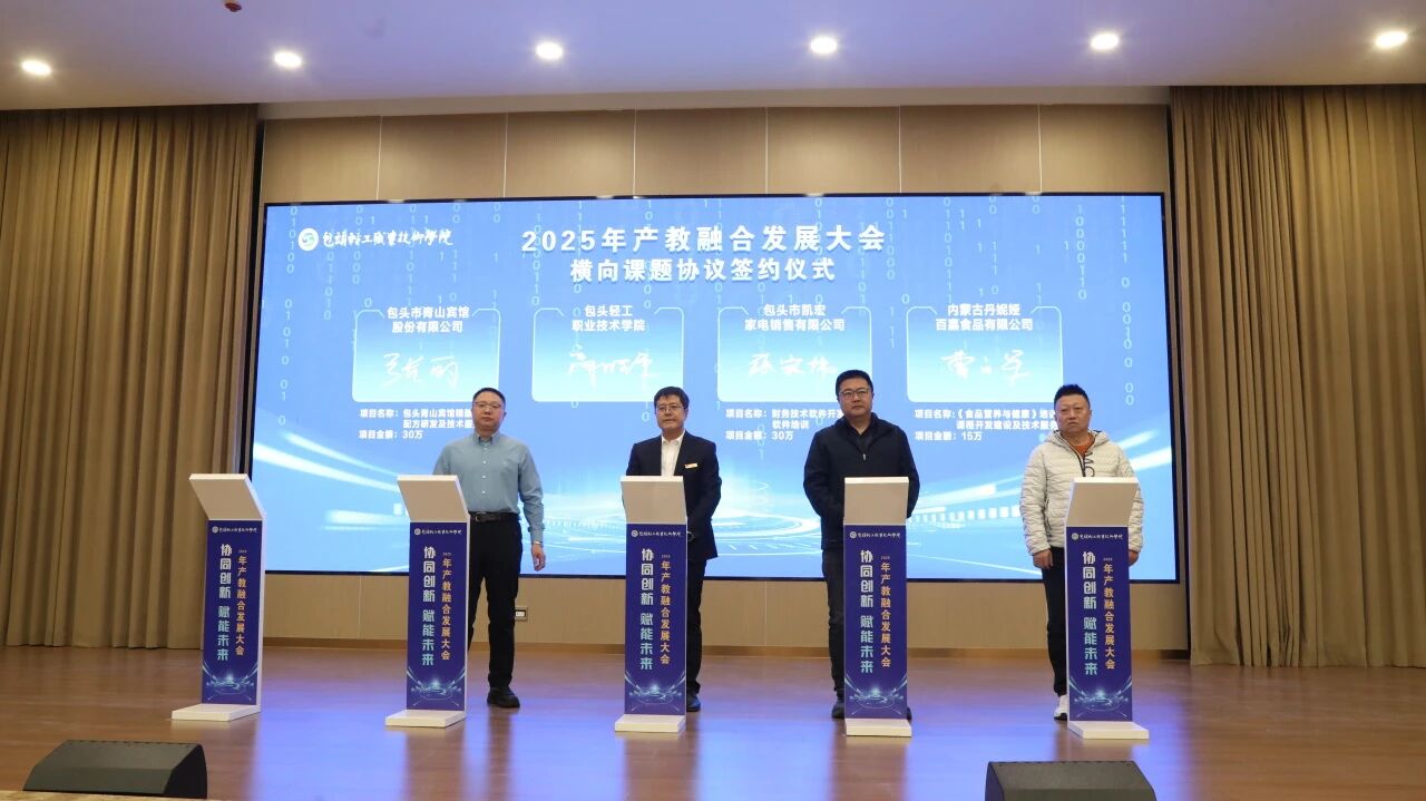 为推动职业教育与产业协同发展,实现创新链、产业链、人才链充分融合,构建“中高职一体、校企协同”的生态体系。12月5日,包头轻工职业技术学院举办“协同创新 赋能未来”2025年产教融合发展大会。